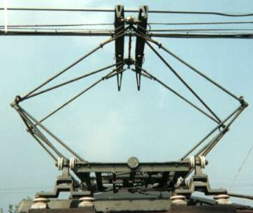 パンタグラフ:シンプルカテナリーをこの大きなパンタでトレースする。